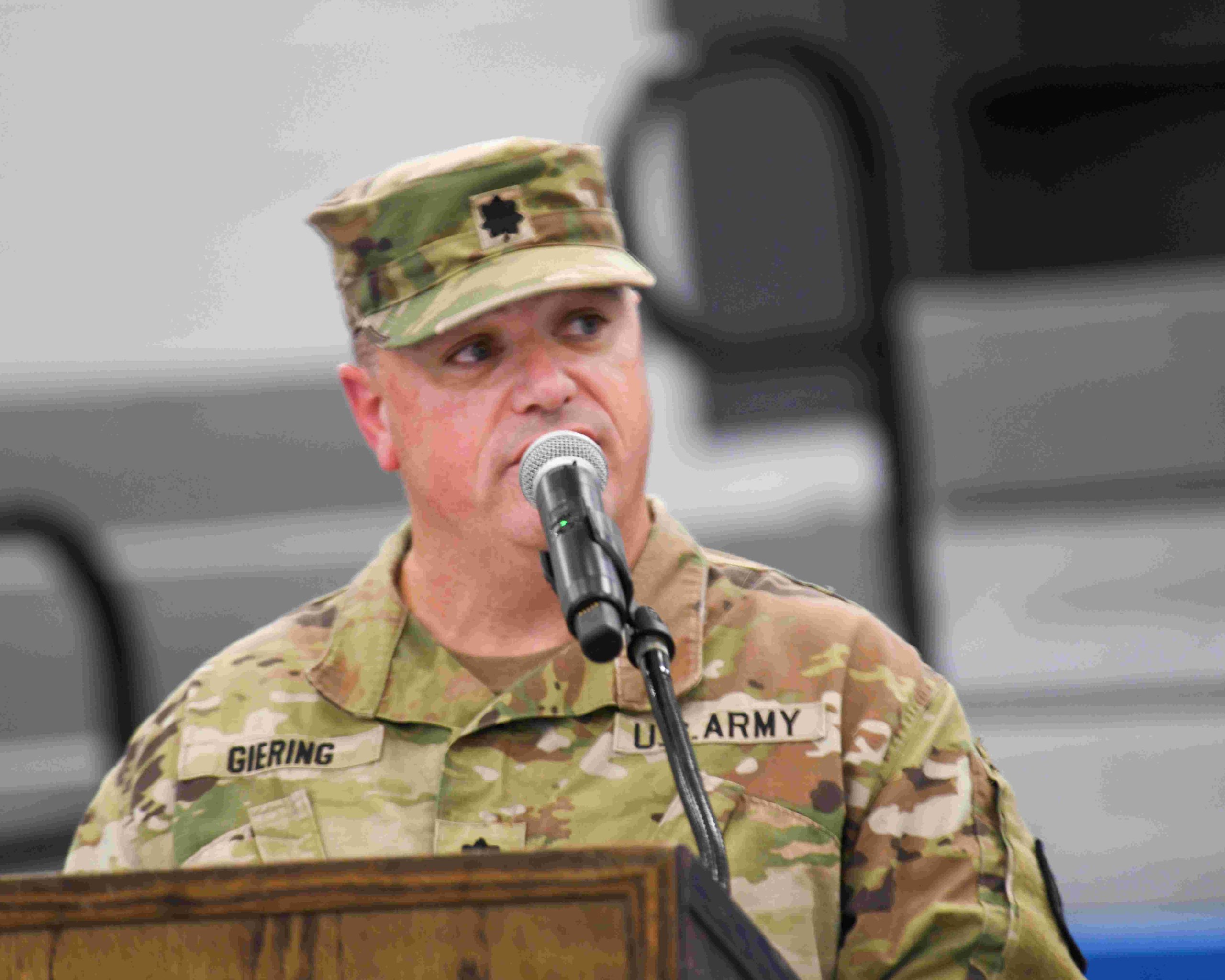 Family, friends, Soldiers and distinguished guests gathered to honor Bratton’s leadership and celebrate Giering’s assumption of command. Brig. Gen. John Plunkett, special assistant to the adjutant general of Louisiana, praised both commanders during the ceremony.