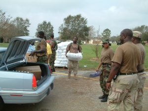 Soldiers of 1st Battalion, 141st Field Artillery Regiment, 256th Infantry Brigade Combat Team, also known as the Washington Artillery, headquartered at Jackson Barracks in New Orleans, were particularly concerned for their families and communities. Lt. Col. Jordan Jones, commander, at the time, of the 1-141st, stated, “They’re all watching TV, and some have seen their neighborhoods completely submerged in water.”