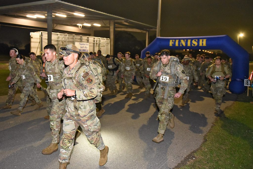 “It took a lot of coordination with multiple agencies to successfully plan the Norwegian Foot March,” said Chief Master Sgt. Christy McGill, senior enlisted leader of the 159th Maintenance Squadron Munitions Flight and the event’s lead planner. “The greatest challenge was designing a route that was both safe from traffic and interesting enough to maintain participant morale.”