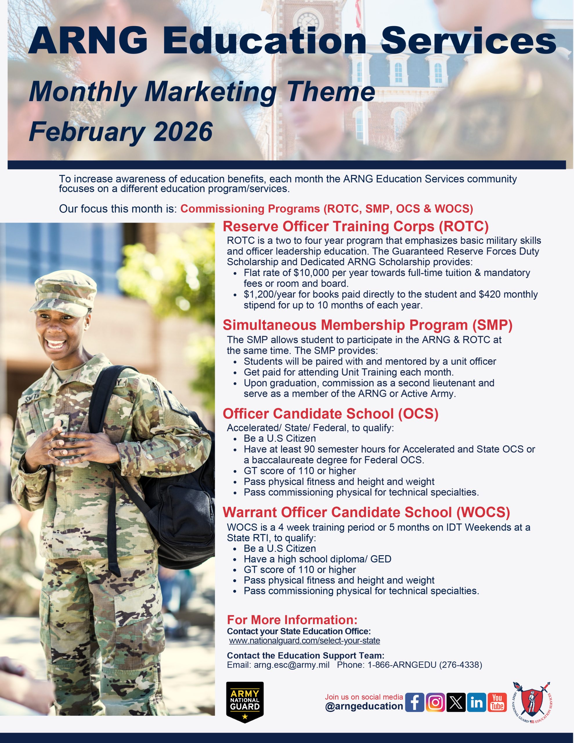 The Education Services Office is here to serve you for all of your educational needs. We strive to be a great resource for all Service Members of the Louisiana National Guard, both past and present. We look forward to hearing from you!